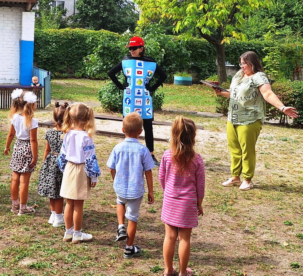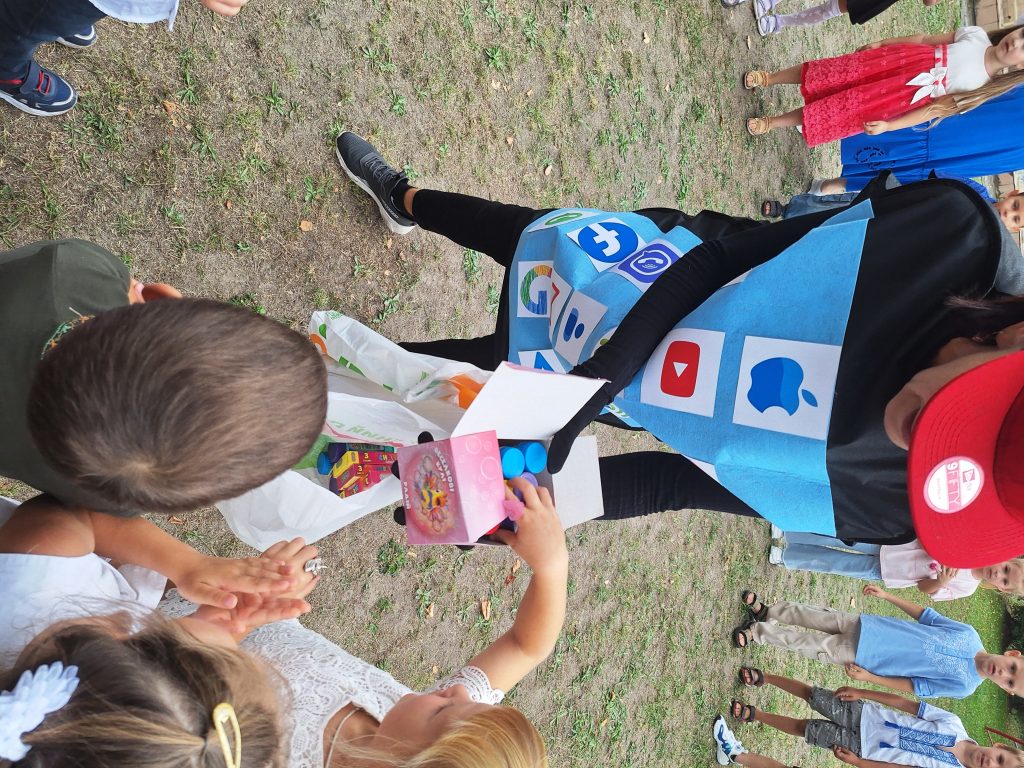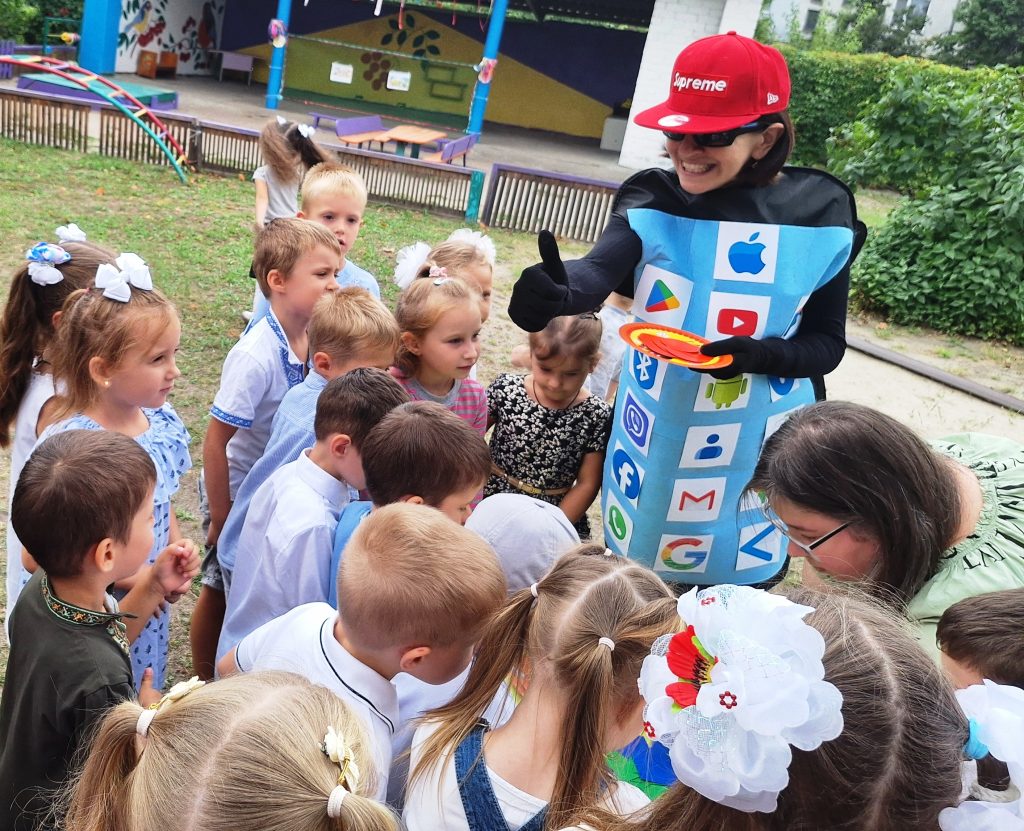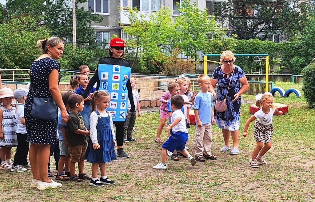 Керівник музичний Озерова Аліна Юріївна, та вихователь Дольнік Наталія Селіверстівна створили свято для наших вихованців. До нас завітав МОБІЛИЧ – головний спеціаліст в питаннях спілкування в соціальних мережах. Він влаштував перевірку для наших вихованців до нового навчального року. Наші вихованці показували свої вміння з математики( розкладали геометричні фігури), розвитку мови( розгадували загадки),фізичної активності( естафети на швидкість та спитність). Весело танцювали,співали. Наші малята,вразили Мобілича своїми вміннями. На згадку МОБІЛИЧ подарував нашим вихованцям невеликі сувеніри,які їм знадобляться під час навчального року.