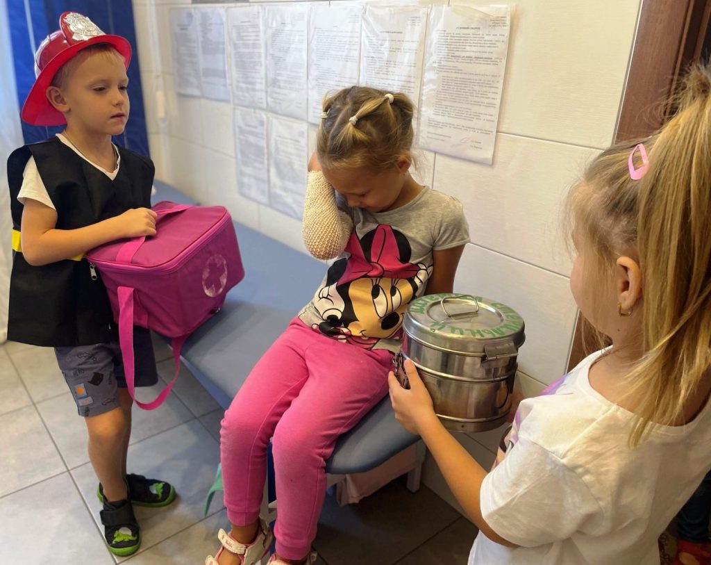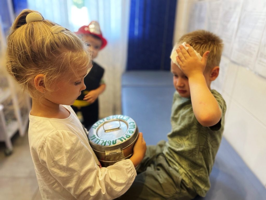 « Маленькі рятівники «Росинки». На групах вихователями було створено освітне середовище для збагачення знань про професію рятувальника. Так група молодшого дошкільного віку «Ягідка», вихователь Дольнік Н.С., організувала проведення творчої гри « Машини рятувальників»,де ознайомила вихованців з технікою, яка допомагає в надзвичайних ситуаціях. На всіх групах проведені інтегровані заняття про професію Рятувальника. Група перед шкільного віку «Дзвіночок»,розіграли тренувальні змагання юних рятівників, які вправлялися у швидкості здолання перешкод,тушіння умовної пожежі, швидкому одягненню спорядження,рятування ігашкових мешканців з вогню. У створених у кожній групі осередках безпеки ,вправлялися в іграх на тематику правил поведінки в надзвичайних ситуаціях. На групі перед шкільного віку» Калинка» вихованці вправлялися у наданні першої медичної допомоги, правилах поведінки в надзвичайних ситуаціях, відпрацьовували правила допомоги рятувальників в найпростіших укриттях.