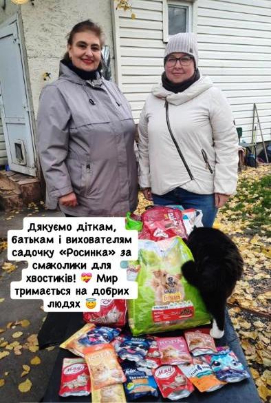 У часи, коли країна переживає непрості випробування, кожному з нас потрібні любов і підтримка. Та найбільше – тим, хто не може подбати про себе сам і так щиро довіряє людям. Це чудова можливість подарувати тепло й турботу чотирилапим друзям, які так цього потребують.Нашими вихованцями та їх родинами зібрано корм та каші для тварин у притулку «Добре серце».