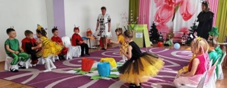 Музична зала замайоріла всіма кольорами веселки! Яскраві костюми комашок — від тендітних метеликів до завзятих жучків — створили неповторний візуальний ефект. Але справжнім сюрпризом для гостей став нетрадиційний дитячий оркестр.Наші маленькі віртуози продемонстрували, що музика живе в усьому! У руках дітей ожили: