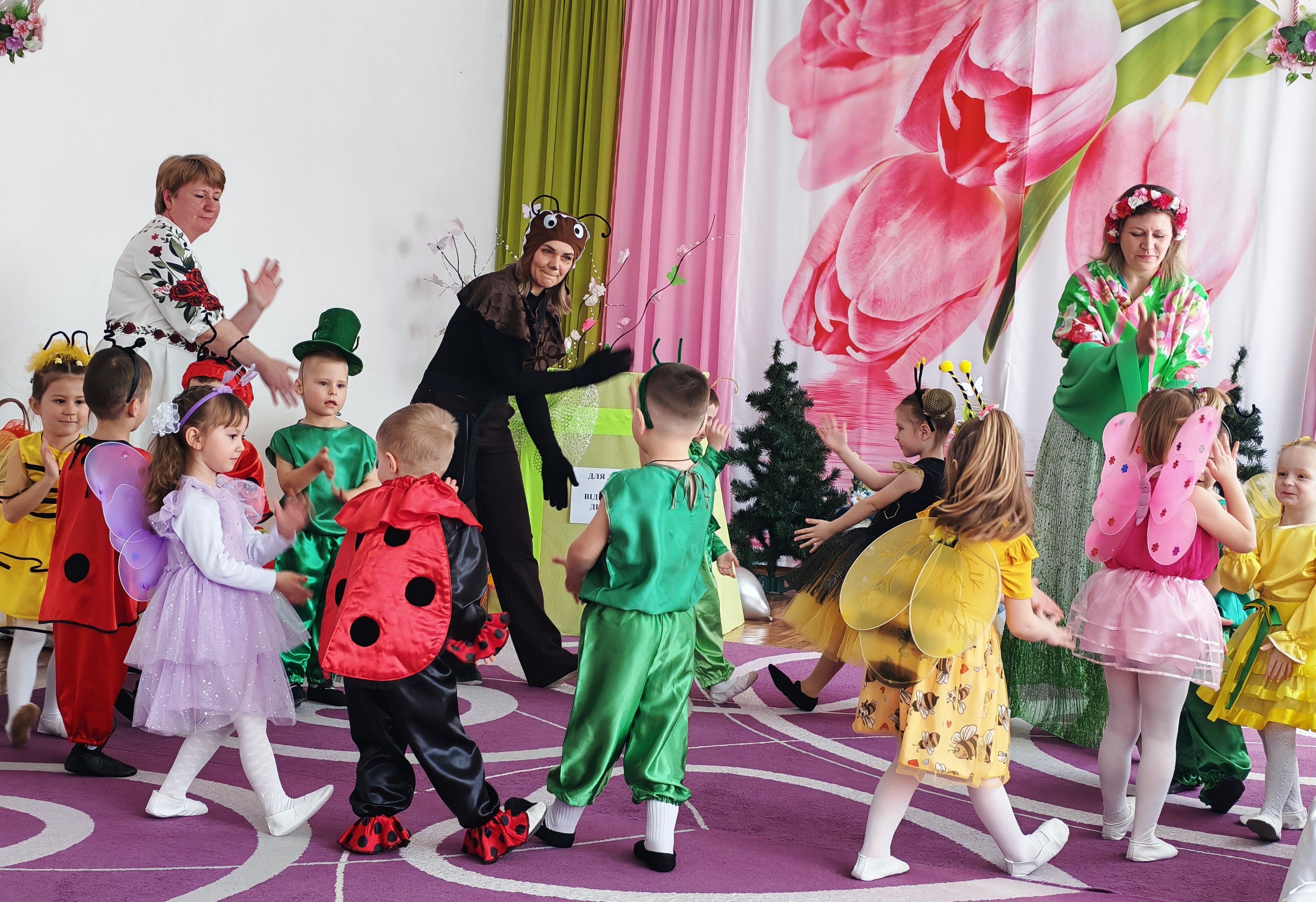 Цьогорічне свято вразило неординарним сценарієм. Головним героєм став чарівний поштар Мурашка, який приніс дітям важливу звістку: весняний ліс втратив свої барви! Щоб повернути кольори та допомогти Весні вступити у свої права, маленькі «кульбабки» перетворилися на яскравий десант лісових мешканців.Завдяки артистичному виконанню ролей нашими педагогами, діти повністю занурилися в атмосферу пригоди. Кожен поворот сюжету викликав щире захоплення, а виконання завдань від Мурашки згуртовувало малят у прагненні зробити світ яскравішим.