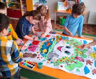 Кульмінацією дня стало створення символічного макету Землі. За основу діти взяли повітряну кулю блакитного кольору, на якій за допомогою техніки аплікації з’явилися континенти та квітучі сади. Ця тендітна куля стала символом нашої планети — прекрасної, але такої вразливої.